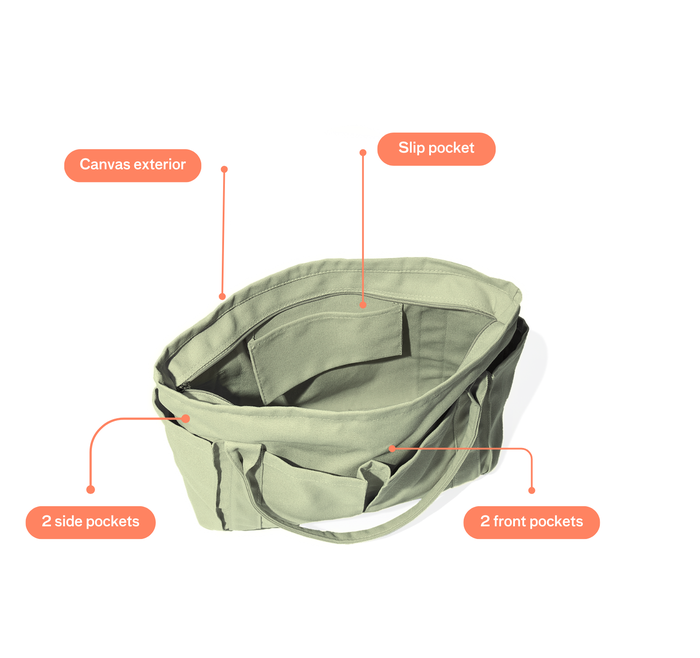 Canvas Pocket Tote - Sage