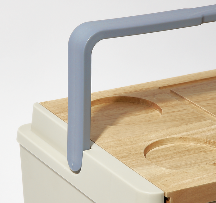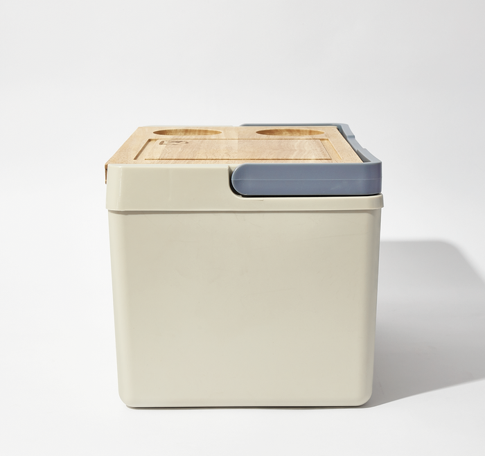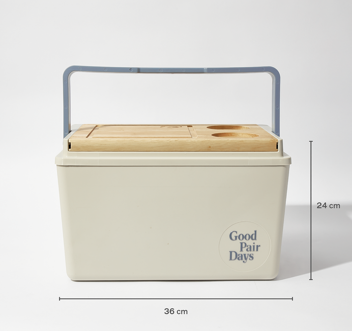 Enhance your outdoor gatherings with our Cheese Board Cooler in storm. Designed to keep your wines and snacks chilled, this insulated cooler is perfect for picnics, beach trips, and backyard barbecues. The wooden lid doubles as a cheeseboard, providing a convenient surface to serve your favourite cheeses and appetisers. With two built-in cup holders, you'll have everything you need within reach for a delightful outdoor experience. Its sturdy construction ensures durability and easy portability, making it an essential companion for all your alfresco adventures.