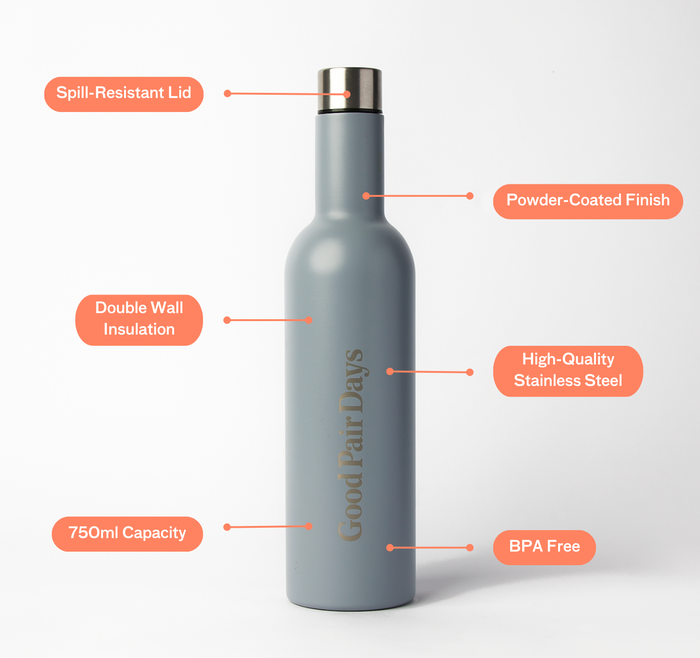 - Double-walled insulation to keep your wine at the perfect temperature for hours