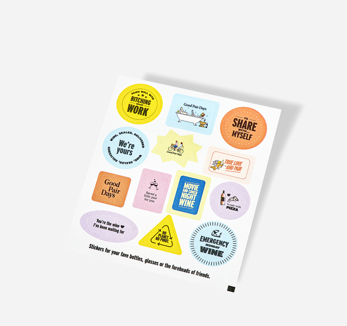Add a touch of personality to your wine collection with our Good Pair Days Sticker Sheet. Featuring 13 unique, playful, and wine-themed stickers, this set is perfect for customising wine bottles, glasses, notebooks, or any surface you choose. Whether you're marking your favourite bottles or keeping track of tasting notes, these stickers bring a bit of fun to your wine experiences.