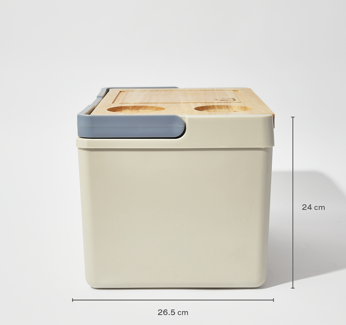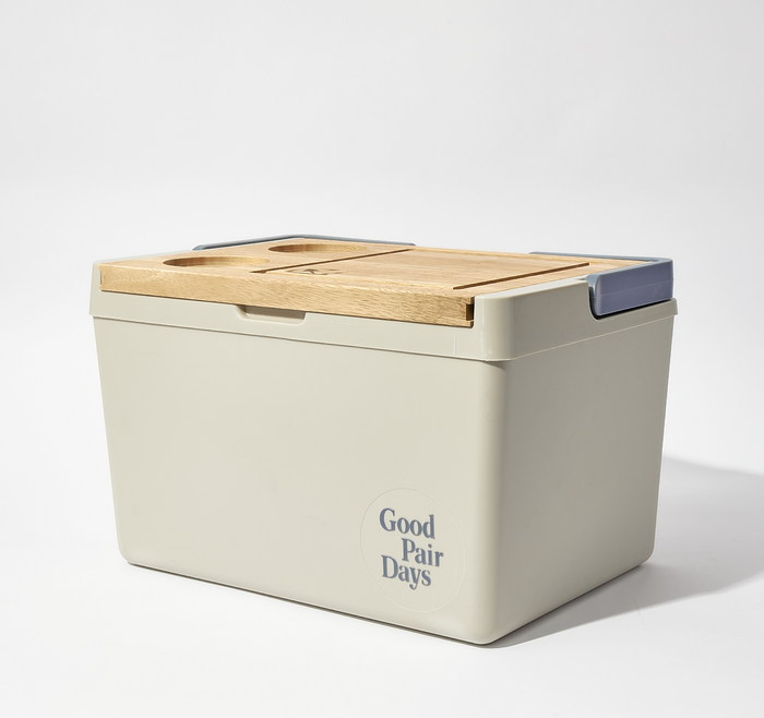 Enhance your outdoor gatherings with our Cheese Board Cooler in storm. Designed to keep your wines and snacks chilled, this insulated cooler is perfect for picnics, beach trips, and backyard barbecues. The wooden lid doubles as a cheeseboard, providing a convenient surface to serve your favourite cheeses and appetisers. With two built-in cup holders, you'll have everything you need within reach for a delightful outdoor experience. Its sturdy construction ensures durability and easy portability, making it an essential companion for all your alfresco adventures.