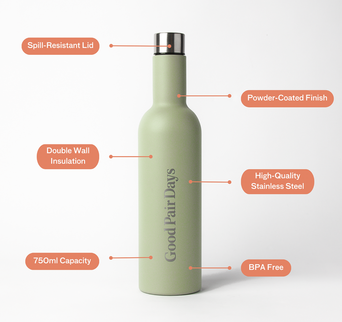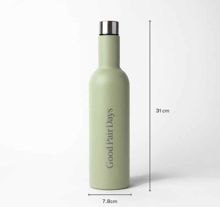 - 1 x 750ml Insulated Stainless Steel Wine Bottle